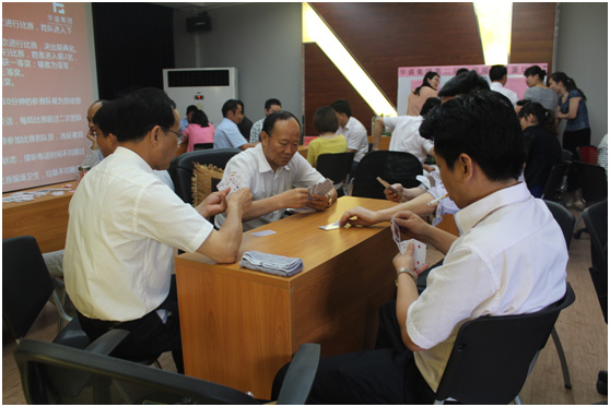为加强集团企业文化建设,搭建员工沟通交流平台,提升企业凝聚力,丰富员工的业余文化生活,经集团总经办组织,于2014年5月24日—2014年5月25日在多功能会议室举行“迎端午庆发展,华盛和谐一家亲”的“掼蛋”比赛。